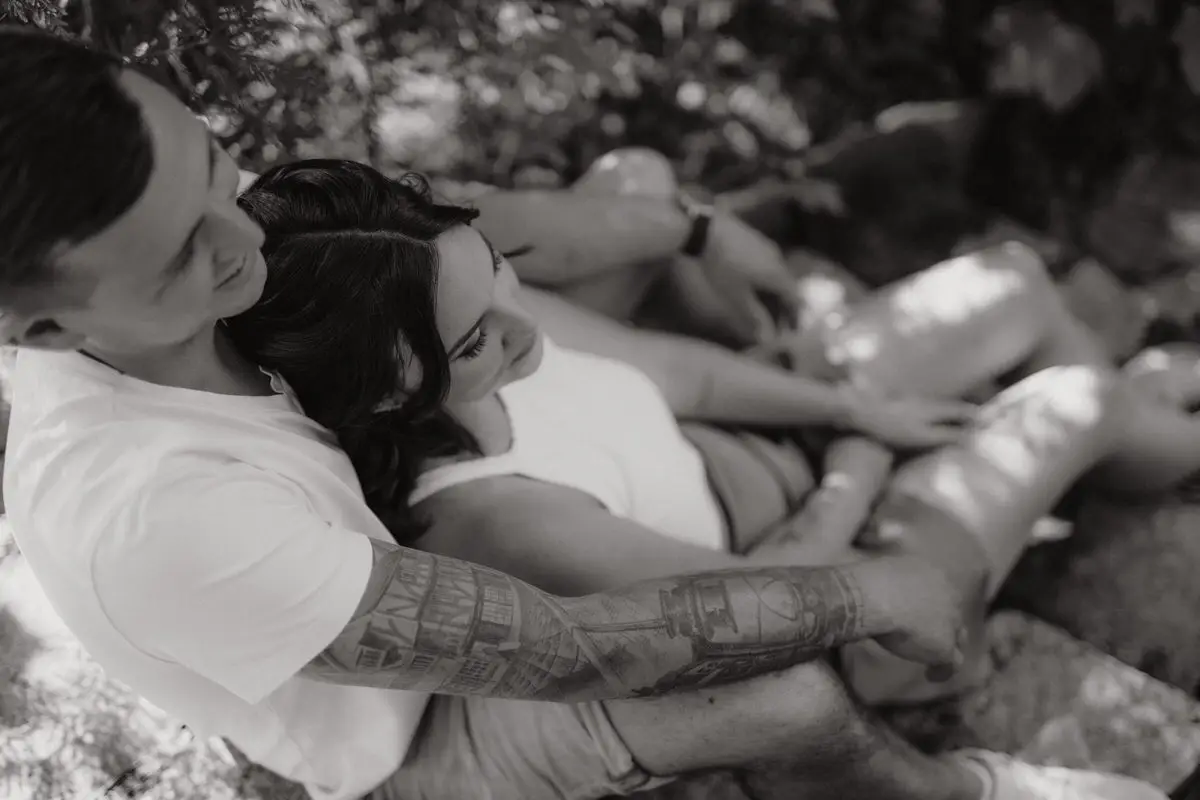 Magdalena und Sascha sind genau so in dieses Shooting gegangen. Ohne Erwartungen, ohne eine klare Vorstellung davon, „wie Paarfotos sein müssen“. Wir sind losgegangen, haben den Weg gewechselt, sind stehen geblieben, haben uns an den Teich gesetzt. Ich habe zugehört, beobachtet und den Moment wirken lassen. Für mich entstehen die besten Bilder dann, wenn nichts forciert wird.