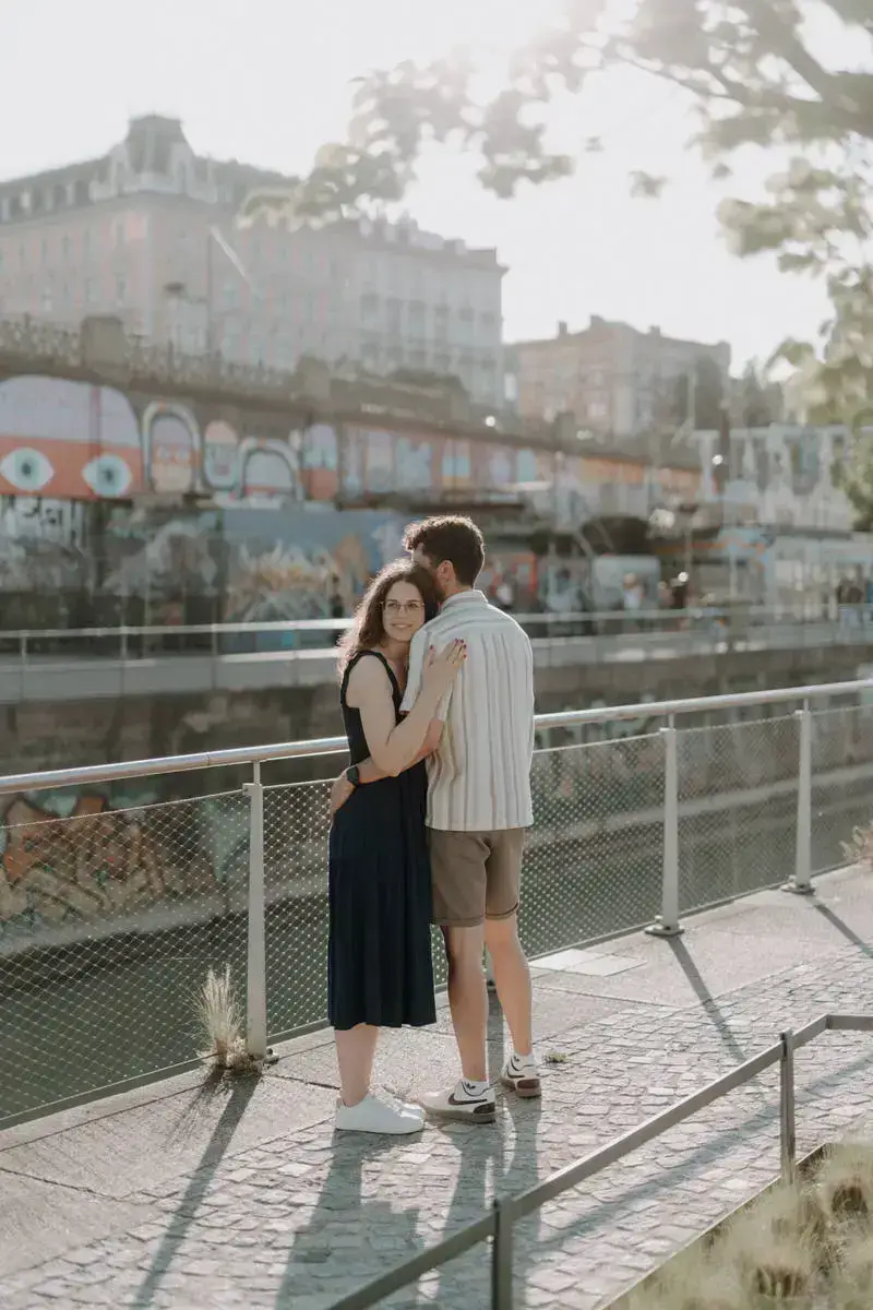 Ein Verlobungsshooting muss sich nicht wie ein klassisches Fotoshooting anfühlen. Wir gehen spazieren, bleiben stehen, reden miteinander. Ich gebe kleine Impulse, wenn es hilft, halte mich aber bewusst im Hintergrund. So entstehen Verlobungsfotos, die nicht gemacht wirken, sondern aus dem Moment heraus entstehen.