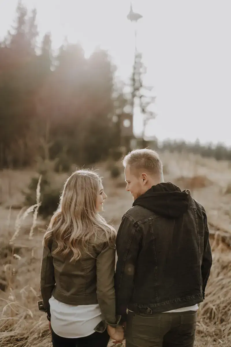 Bei diesem Shooting ging es nicht nur darum, schöne Fotos zu „produzieren“. Vielmehr habe ich beobachtet, wie sich Sandra und David bewegen, wie sie miteinander sprechen, lachen oder auch einfach still nebeneinander gehen. Diese kleinen, oft unbeachteten Augenblicke erzählen viel mehr über eine Beziehung als jede Pose. Besonders Frauen, die natürliche Verlobungsfotografie schätzen, wünschen sich genau das: Bilder, die sich nach ihnen anfühlen und nicht nach einer Rolle vor der Kamera.